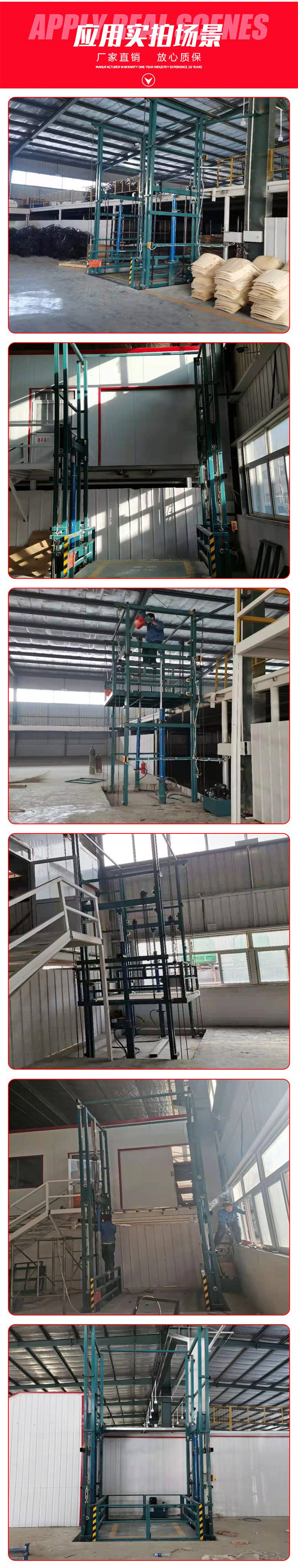 描述:貴陽室內(nèi)倉庫用升降機(jī)廣泛應(yīng)用于工礦企業(yè)代替電梯提升貨物,具有結(jié)構(gòu)簡單、載重量大、使用壽命長、維護(hù)方便、安全實(shí)用等特點(diǎn),尤其適用于帶井道地下無法挖地基的場所。
